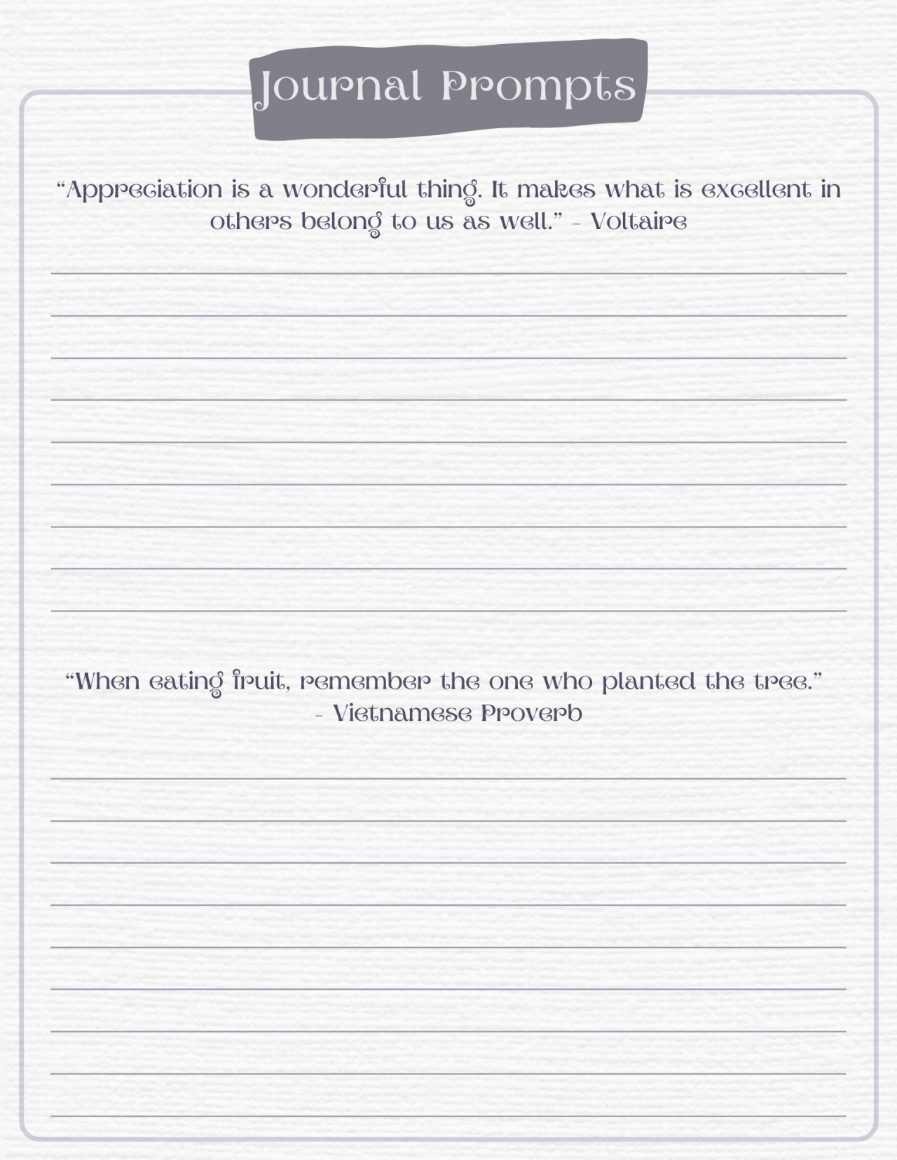 Our Gratitude Journal has a variety of daily, weekly and monthly templates for you to choose from, along with pages of gratitude prompts and quotes galore.